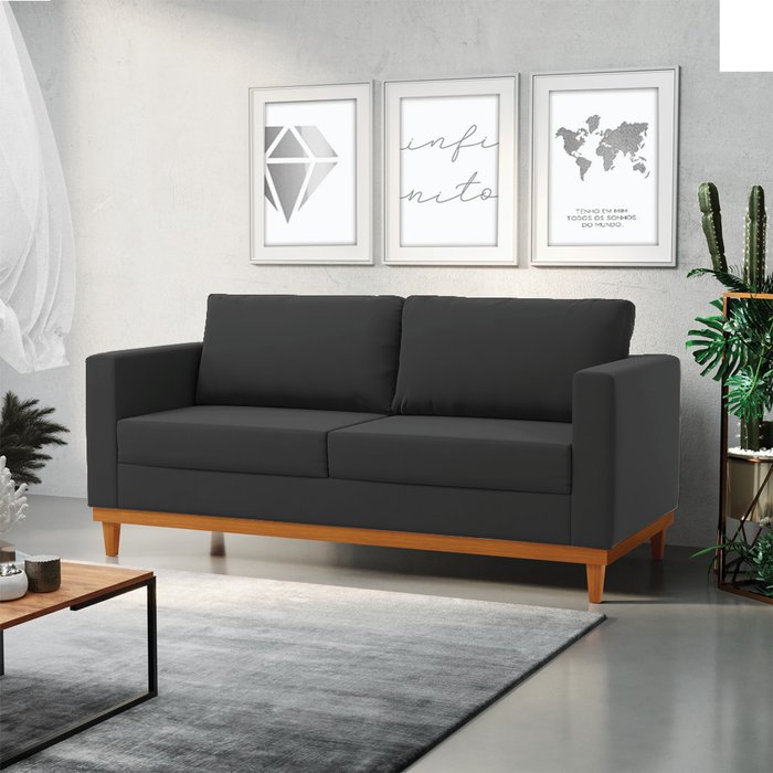 Sofá 03 Lugares Juliette Corino Base Madeira Castanho - D'rossi Preto