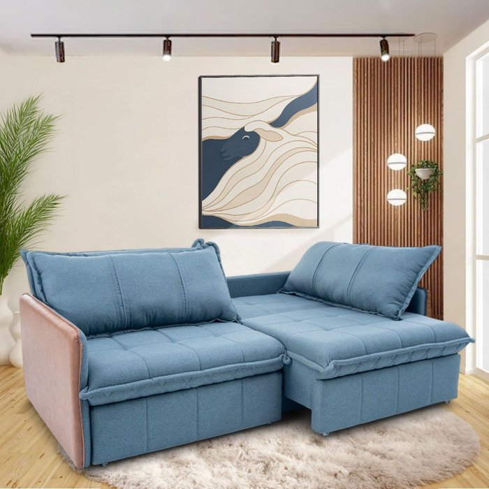 Sofá Cama Casal 2 Lugares 2,10m Domani Linho Azul - Loja Sheep