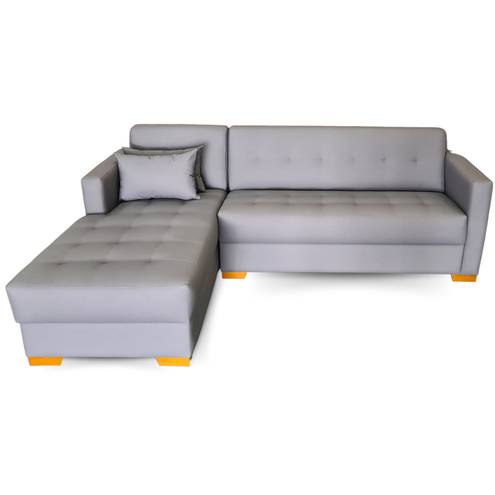 Sofá Chaise Gianni | Pé Cantoneira & Tecido Acquablock Impermeável | Medida 220cm | Cinza