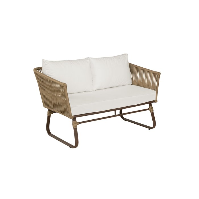 Sofá de 2 Lugares Área Externa Corda Náutica Alumínio Tecido Impermeável Jardim Varanda Piscina Marrom com Rami