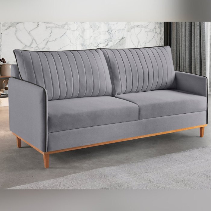 Sofá Fixo 2 Lugares Living Persa Veludo Cinza
