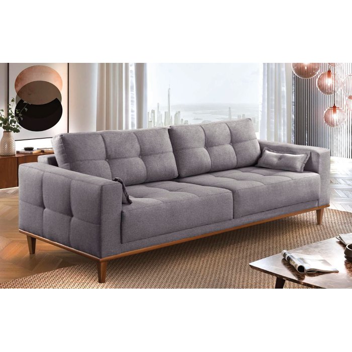 Sofá Fixo Mercúrio 2,20cm Pês Madeira Almofadas Soltas