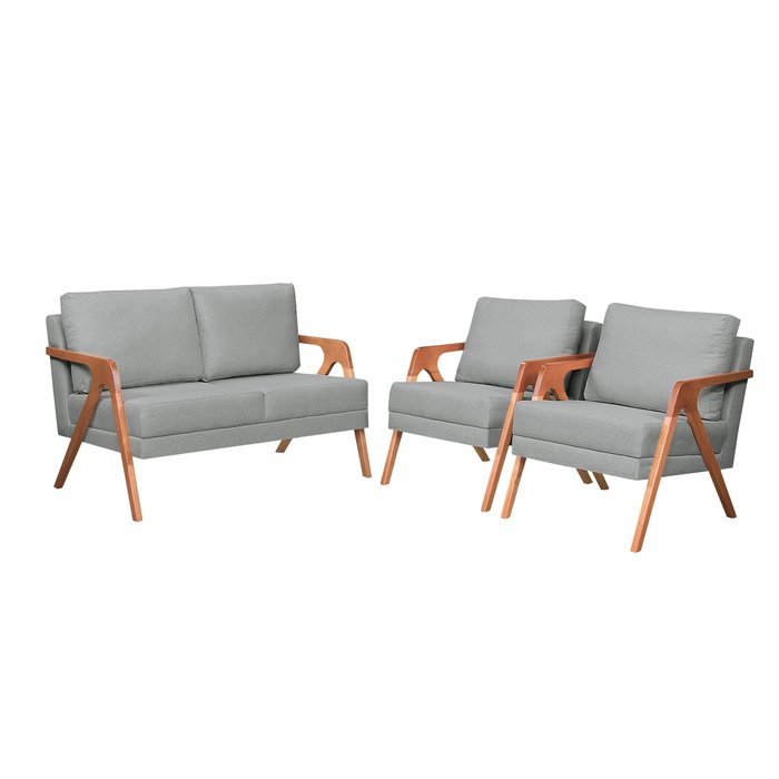 Sofa Namoradeira e Kit 2 Poltronas Mona:cinza Claro CINZA CLARO