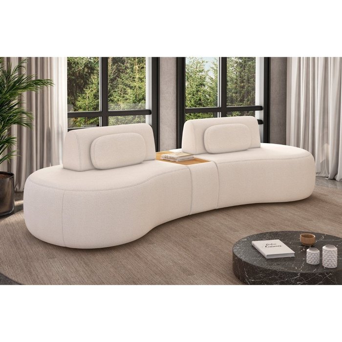 Sua base orgânica conversa com o estilo escandinavo, enquanto o minimalismo do design e a funcionalidade versátil o conectam ao espírito contemporâneo. Um móvel que se encaixa em salas amplas, espaços comerciais sofisticados ou ambientes de convivência que valorizam a estética fluida e atemporal.