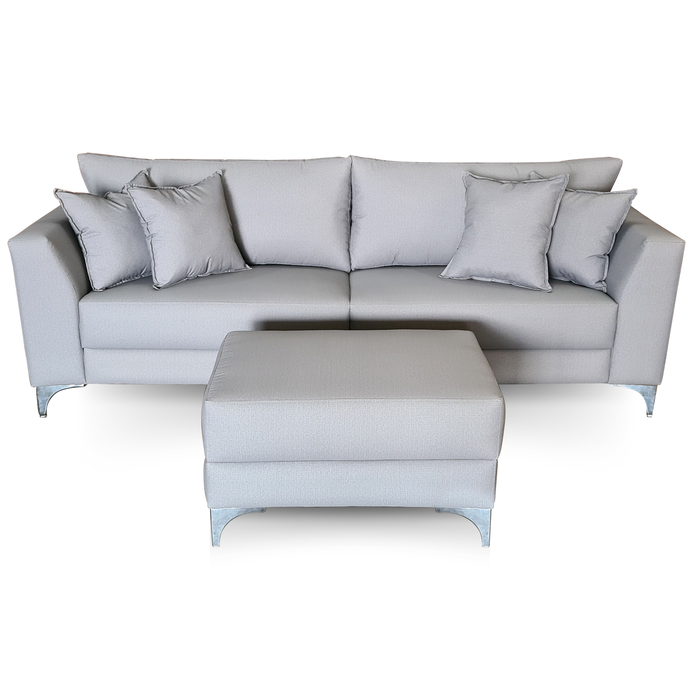 Sofá Pierri & Puff | Pé Aço Cromado & Tecido Acquablock Impermeável | Bipartido | 230cm | Cinza