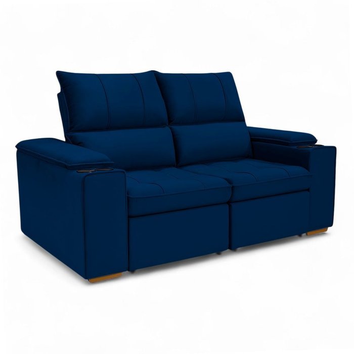 Sofá Retrátil Reclinável 2 Lugares 1,90m Boni Veludo Azul Marinho
