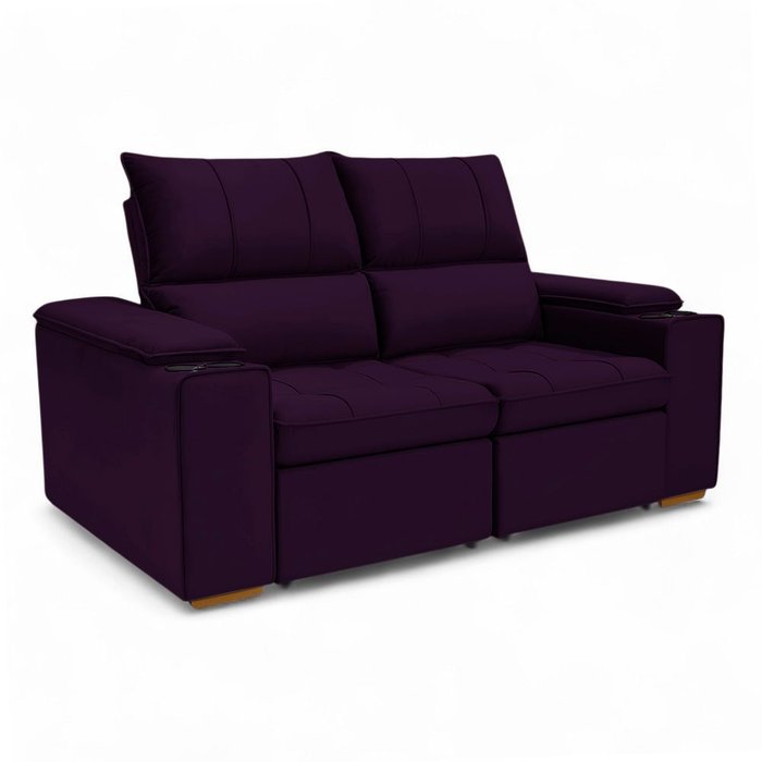 Sofá Retrátil Reclinável 2 Lugares 1,90m Boni Veludo Roxo Roxo