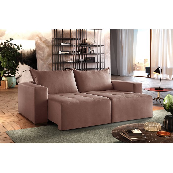 Sofá Retrátil Urano Rose 1,90cm Almofadas Soltas