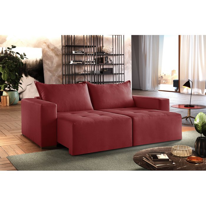 Sofá Retrátil Urano Vermelho 2.20cm Almofadas Soltas