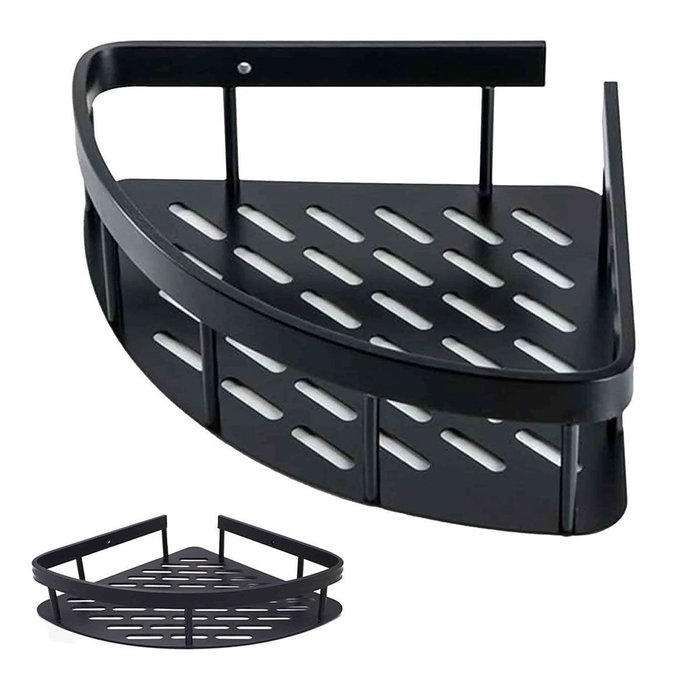 Suporte de Canto Prateleira Banheiro Box Shampoo Condicionador Sabonete Cozinha Casa Lavanderia Mult Preto Fosco