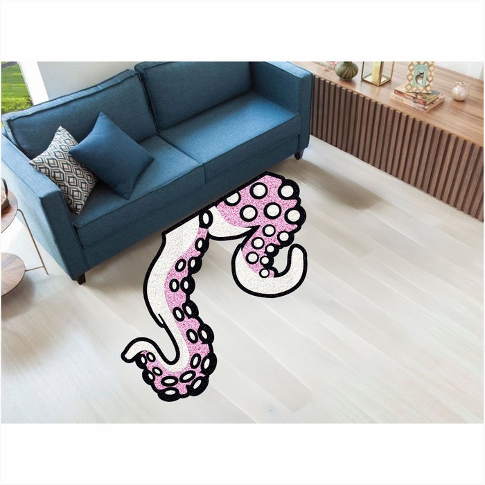 Tapete Capacho Animalia Polvo Tentáculos no Formato 80x60 Cm:rosa Bebe e Branco