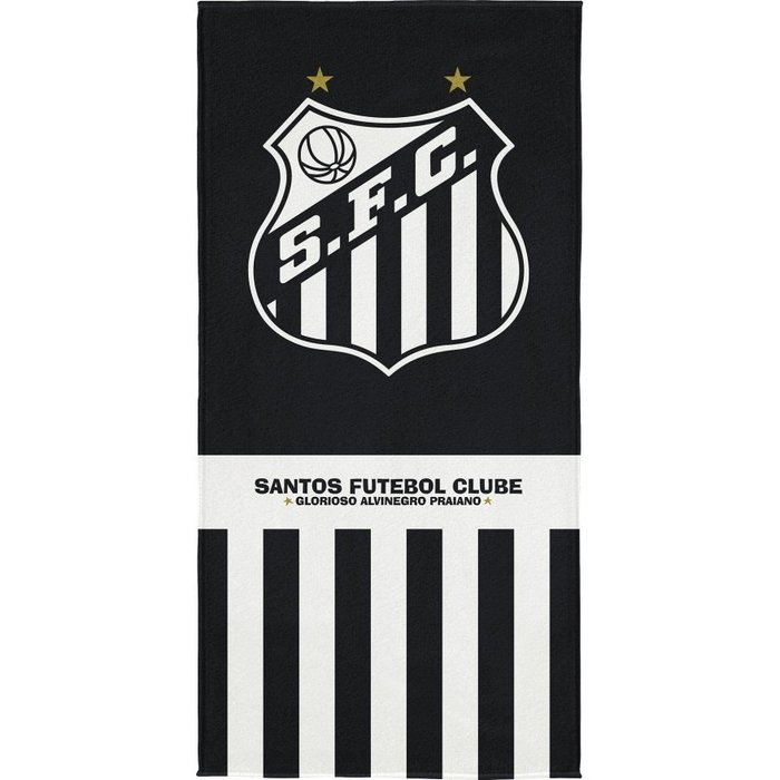 A toalha aveludada estampada do Santos ilustra o nome e o escudo do clube, com suas tradicionais cores e faixas. Apresenta um tecido aveludado, super macio e felpudo no verso para uma absorção ainda melhor.