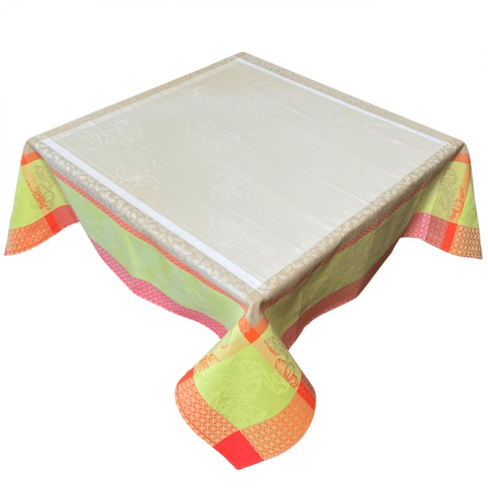 Toalha de chá Pinterest verde 1.00x1.00m, em tecido Jacquard 100% Algodão 210 gr/m2. Desenho floral com barra localizada. Pode ser usada como centro de mesa ou toalhinha de chá. Tratamento anti-manchas Design localizado Resistente aos lavagens Tecido encorpado com caimento perfeito Importado de Portugal