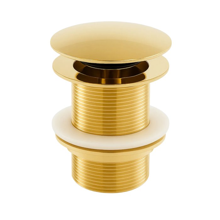 Transforme o seu banheiro em um ambiente moderno e sofisticado com a Válvula Click Dourada 1 1/4", fabricada 100% em metal de alta resistência e com acabamento premium em dourado polido.