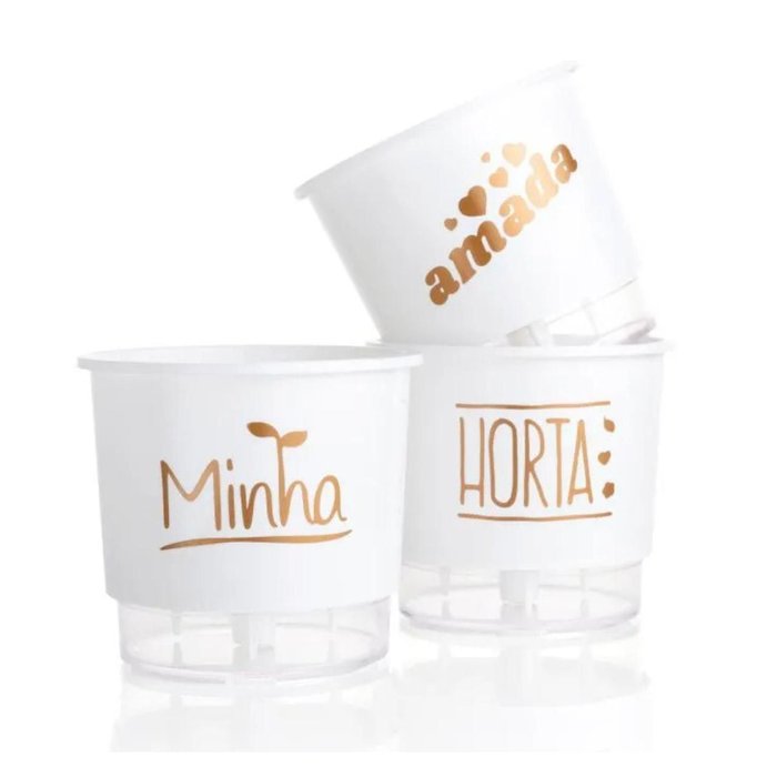 Vasos Autoirrigáveis - Trio Branco com Dourado